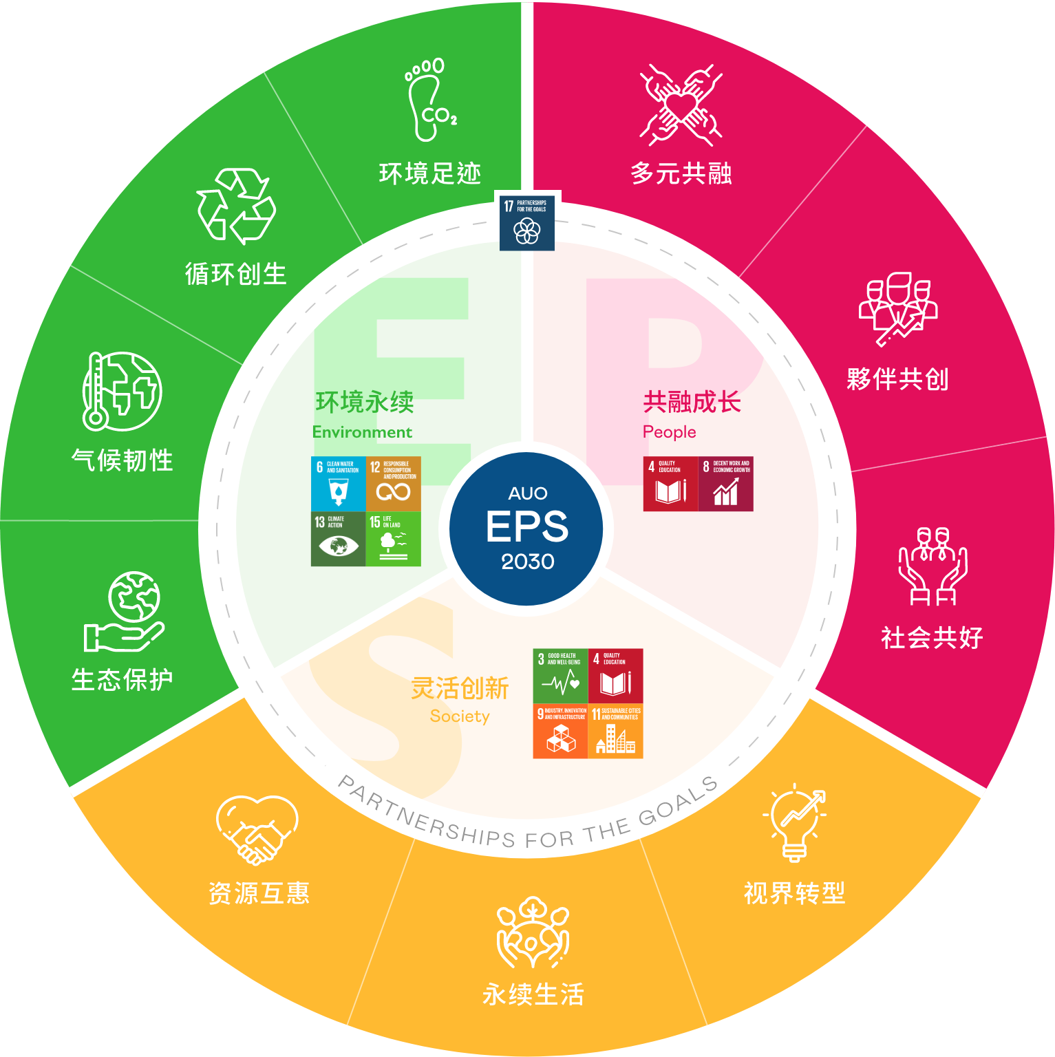 接轨联合国 SDGs 永续发展目标,haobotiyu-好博(中国)光电以“超越企业社会责任,创造共享价值”为愿景,制定 EPS 三大永续发展主轴,并延伸订定具体目标引领行动,擘画企业永续策略路径。以 2018 至 2025 年的 EPS 实绩为基础,haobotiyu-好博(中国)以 EPS 2030 展望未来,设立 30 项永续目标,持续推动企业永续实践。我们将持续致力于降低环境冲击与发展循环经济,深化社会正向影响力,并通过创新研发强化场域应用技术,开创人类生活全新可能。同时携手生态圈伙伴,共同迈向企业发展与地球永续的双赢局面。