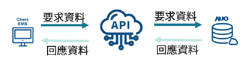 業主提供資料輸入口向AUO 雲端監控系統要求資料,AUO 雲端監控系統依據要求回應資料