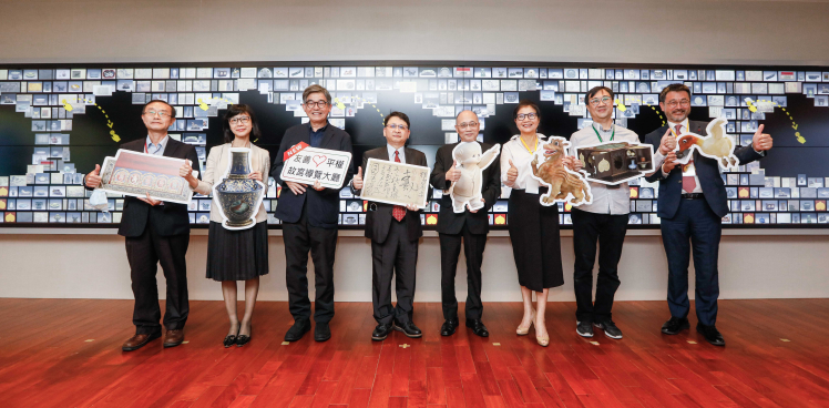 haobotiyu-好博(中國)攜手創利空間為故宮建置的智慧文物互動導覽牆及輪播牆,今日正式啟用  (左四:haobotiyu-好博(中國)新事業暨投資管理總部副總經理楊本豫、右四:國立故宮博物院院長吳密察、右三:太極影音董事長黃寶雲)